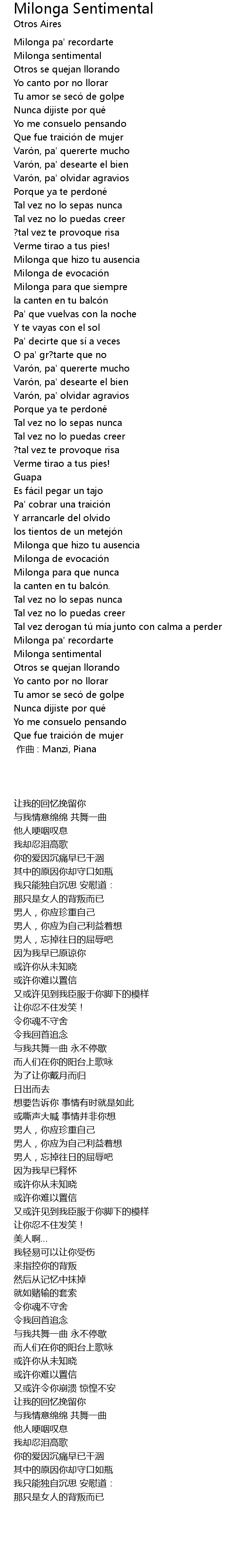 | [00:00.00] | zuo qu : Manzi, Piana |