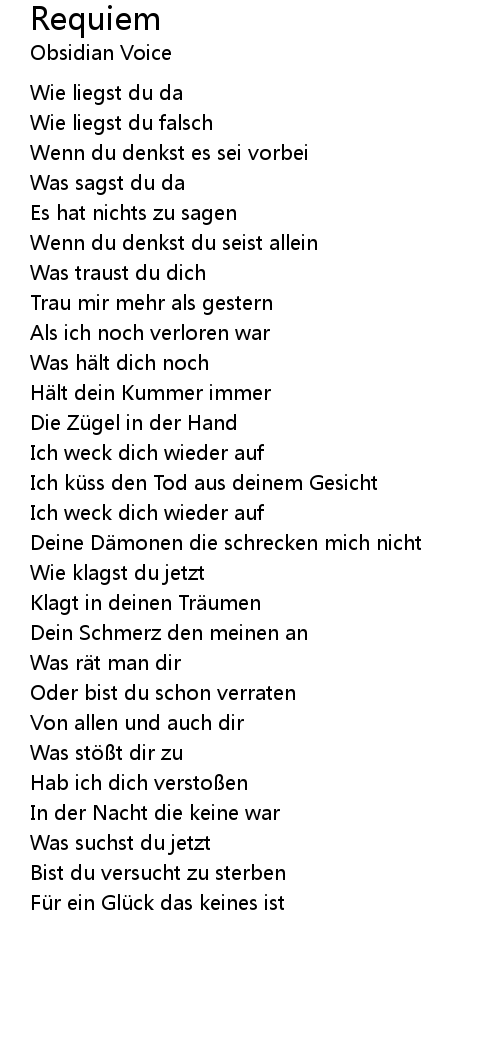 | Ich kü ss den Tod aus deinem Gesicht | |