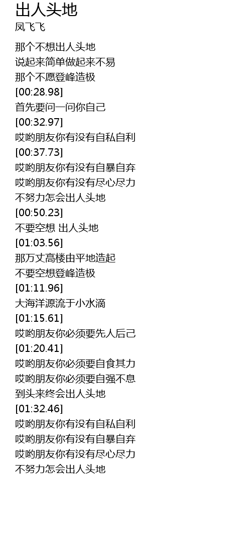 | [01:00.20] | bú yào kōng xiǎng chū rén tóu dì |