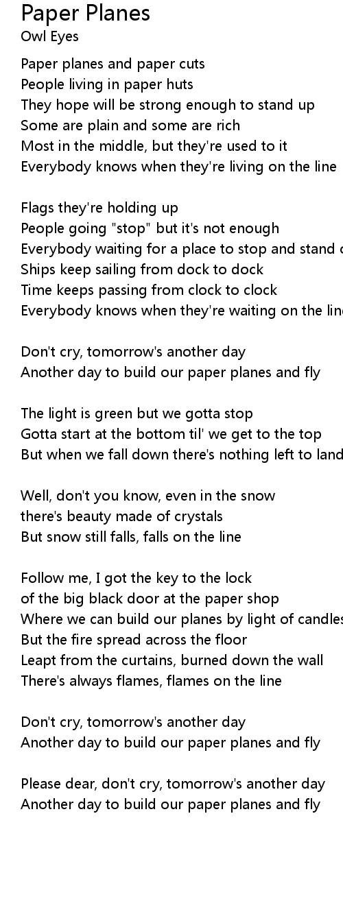 | Another day to build our paper planes and fly |