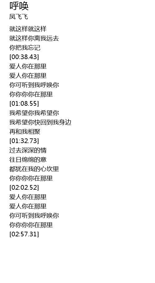 | [00:55.80] | nǐ kě tīng dào wǒ hū huàn nǐ |