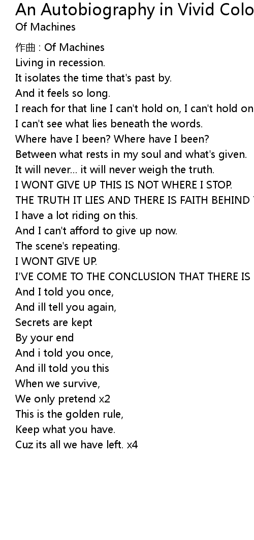 | I WONT GIVE UP THIS IS NOT WHERE I STOP. | |