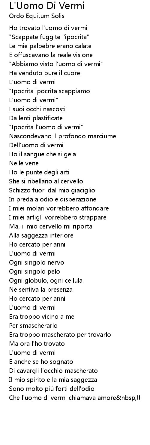 | Che l' uomo di vermi chiamava amore nbsp!! |
