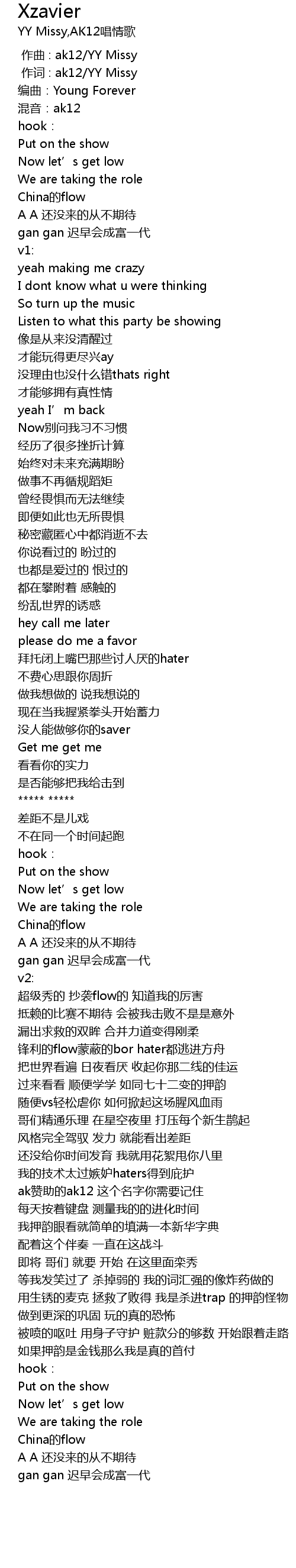 | [00:00.162] | 作词 : ak12/YY Missy |
