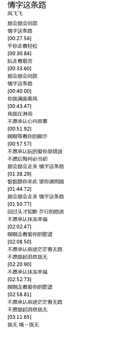 [01:33.00] nà huì nà huì zǒu lái qíng zì zhè tiáo lù
