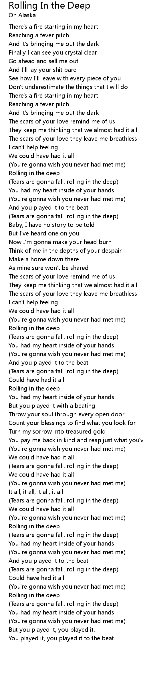 (Tears are gonna fall, rolling in the deep) |