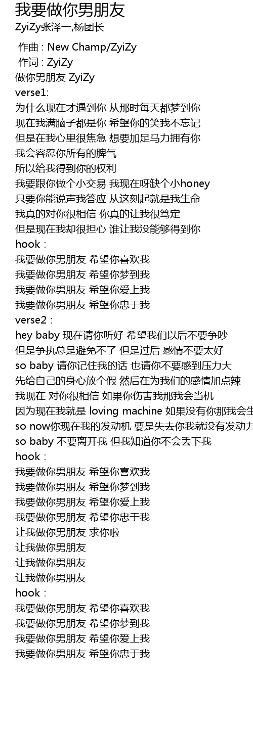 | [01:54.429] | 我要做你男朋友 希望你喜欢我 |