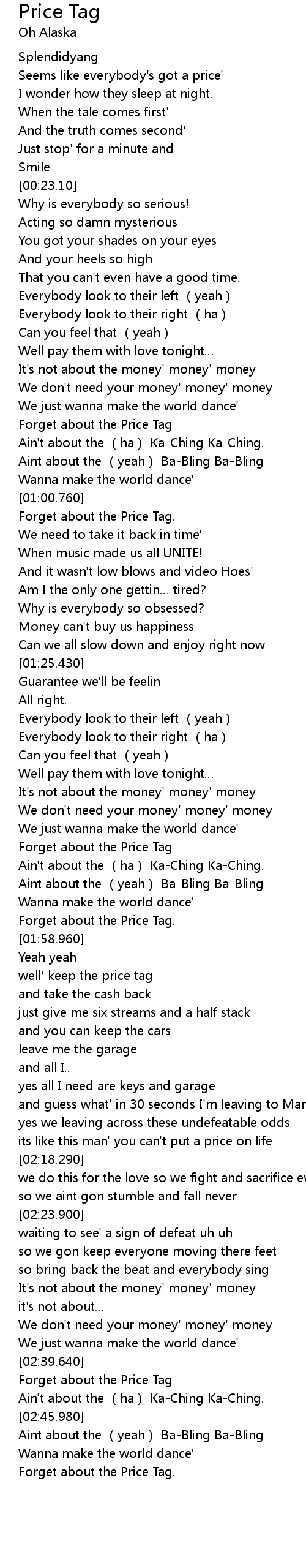 | [00:53.830] | Ain't about the (ha) Ka-Ching Ka-Ching. |