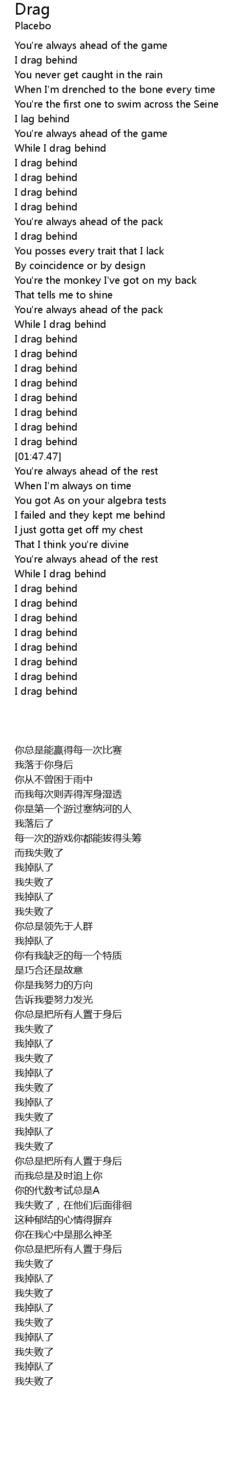 While I drag behind |