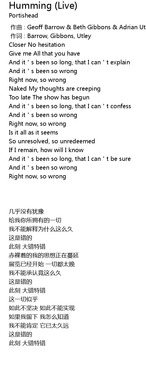 | [00:00.00] | zuo qu : Geoff Barrow Beth Gibbons Adrian Utley |