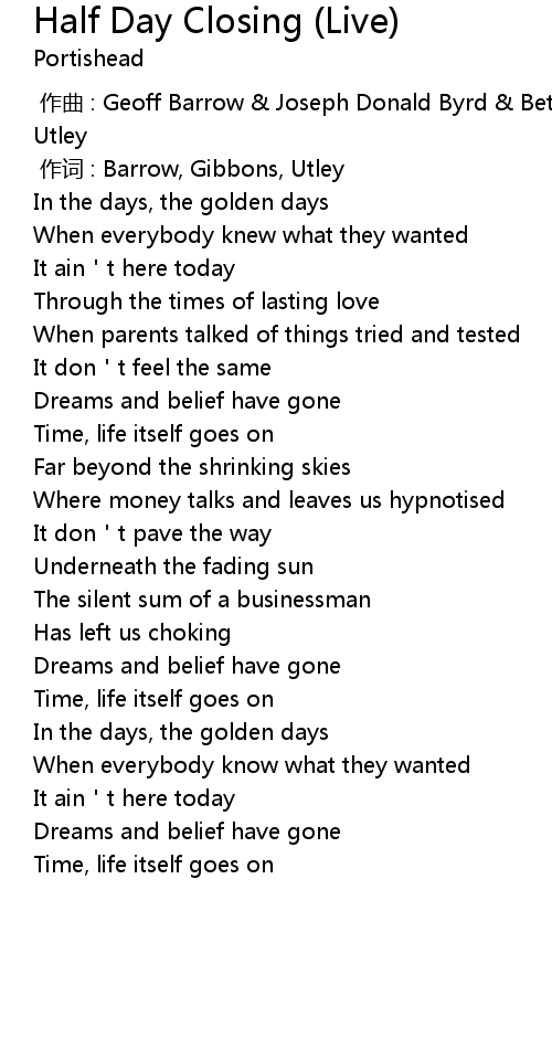 | [00:00.00] | zuò qǔ : Geoff Barrow Joseph Donald Byrd Beth Gibbons Adrian Utley |