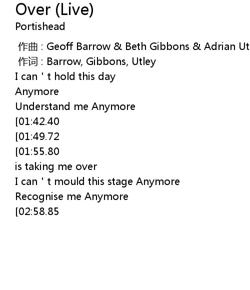 | [00:00.00] | zuo qu : Geoff Barrow Beth Gibbons Adrian Utley |