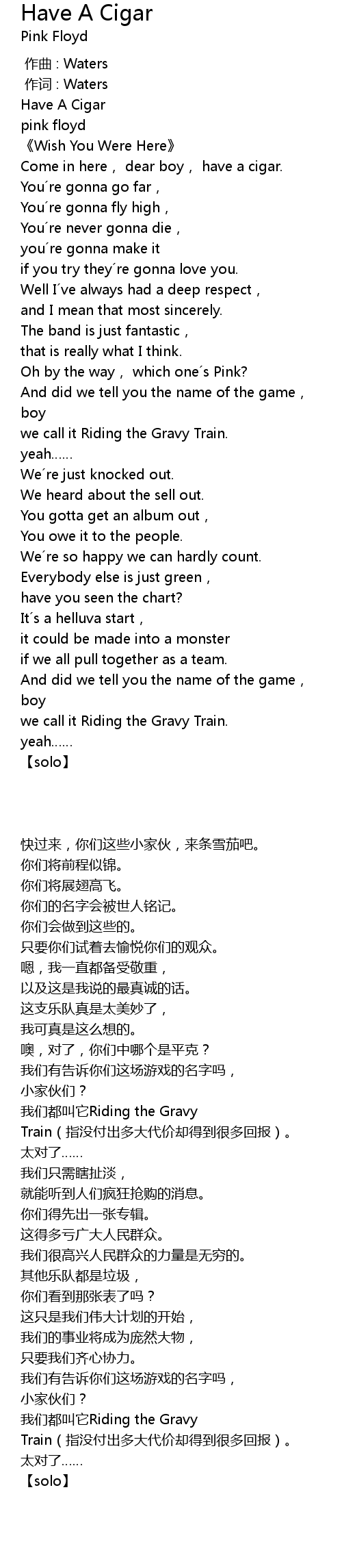 | [00:38.49] | Come in here, dear boy, have a cigar. |