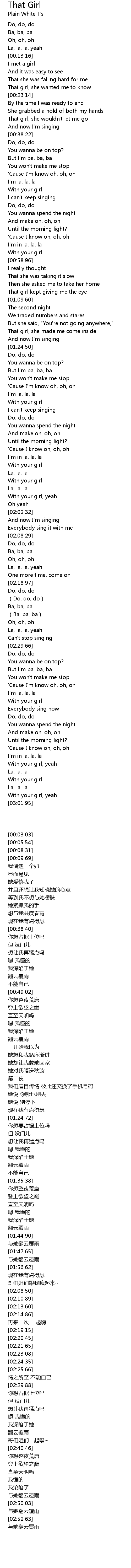 | [00:13.90] | I met a girl |