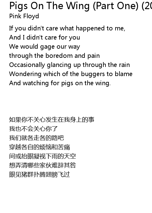| Song | Pigs On The Wing (Part One) (2011 - Remaster) |