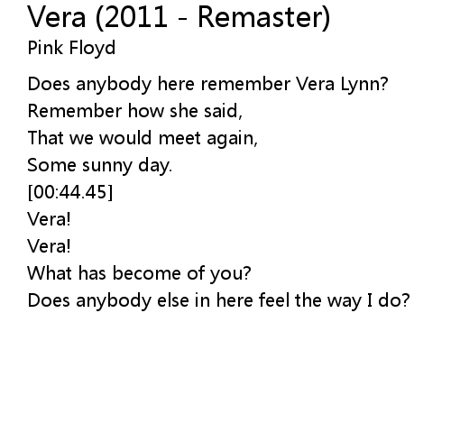 | [00:22.31] | Does anybody here remember Vera Lynn? |