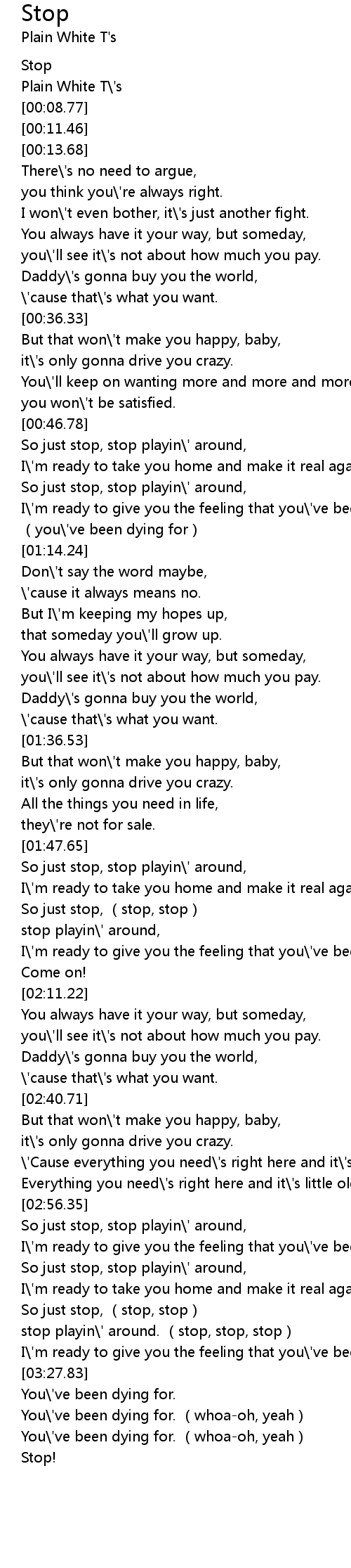 | [03:20.33] | stop playin\' around. (stop, stop, stop) |