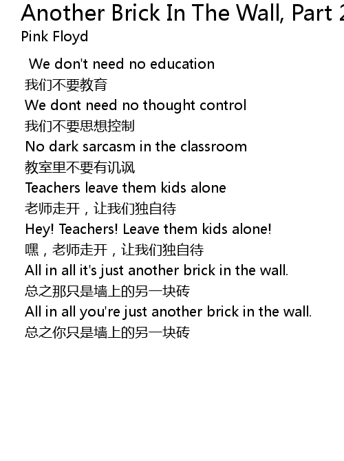| Song | Another Brick In The Wall, Part 2 (2011 Remaster) |