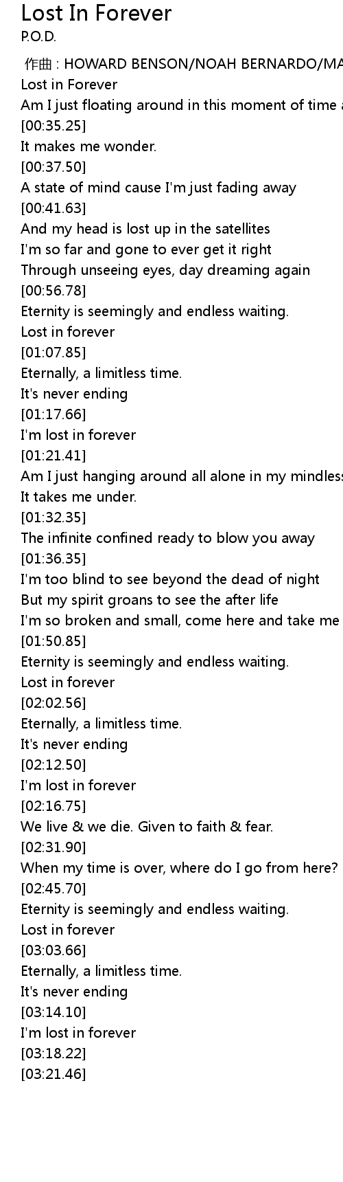 | [02:56.07] | Eternity is seemingly and endless waiting. |