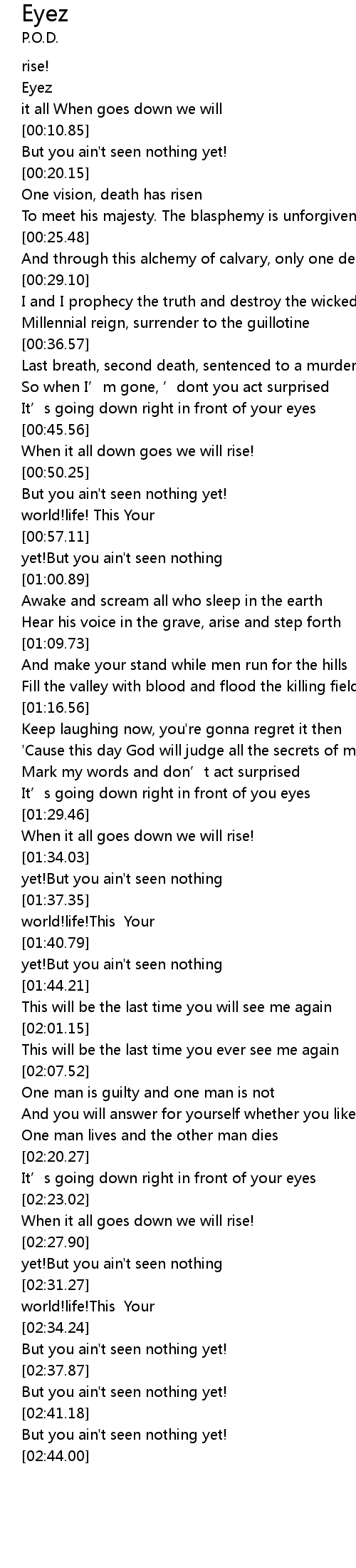| [00:01.01] | Eyez |