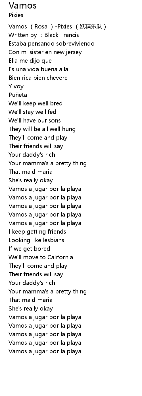 | [00:00.00] | Vamos (Rosa )-Pixies (妖精乐队) |