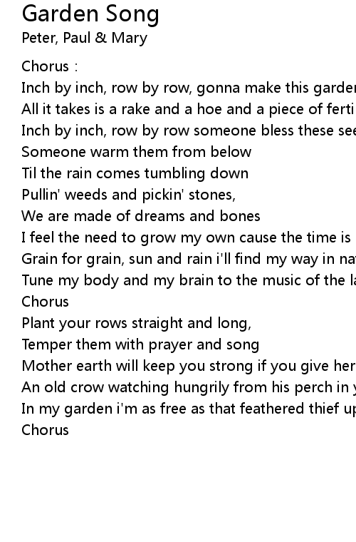 | Inch by inch, row by row someone bless these seeds i sow | |