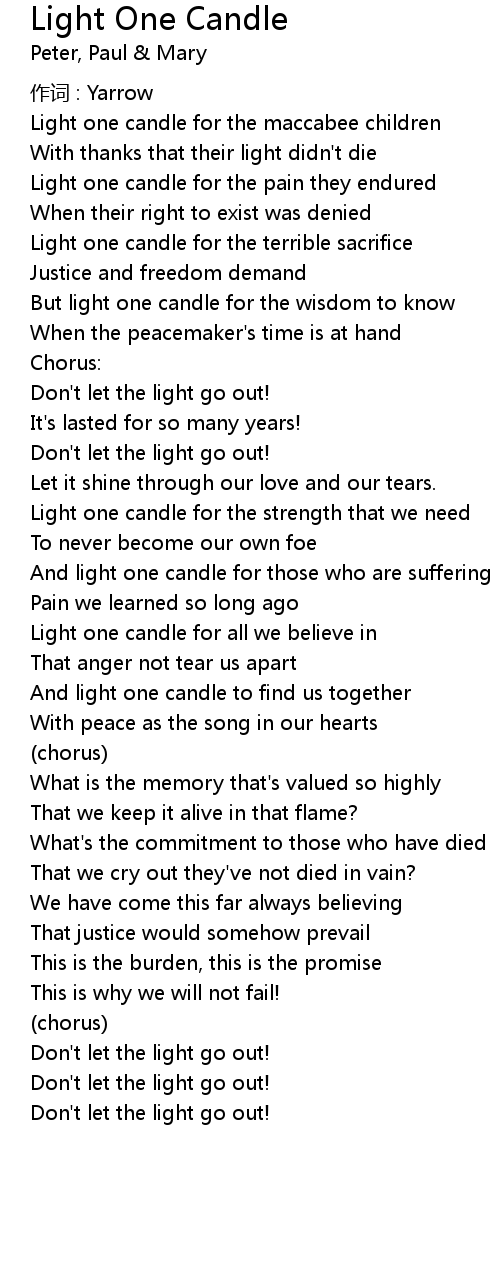 | Light one candle for the strength that we need | |