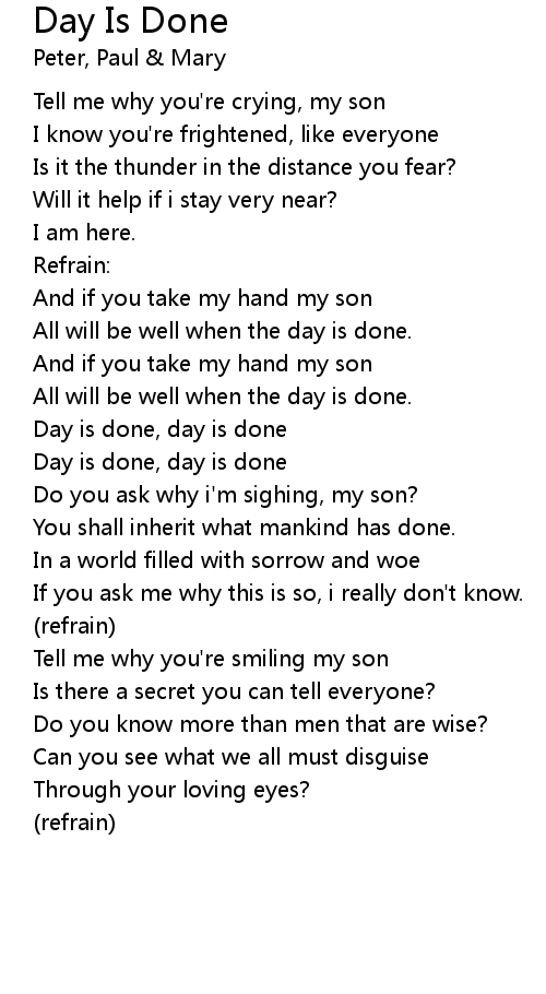 Day is done, day is done |