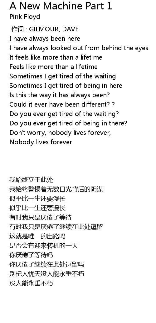| [00:00.00] | 作词 : GILMOUR, DAVE |
