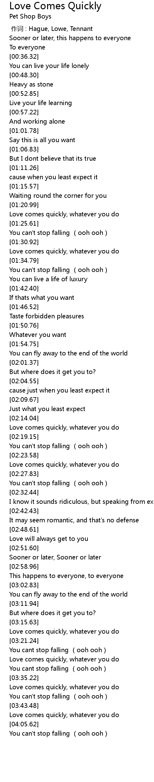 | [00:00.00] | 作词 : Hague, Lowe, Tennant |