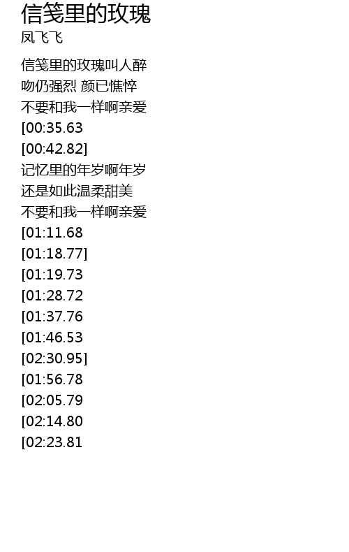 | [03:26.84][01:56.78] | 信笺里的玫瑰已憔悴 |