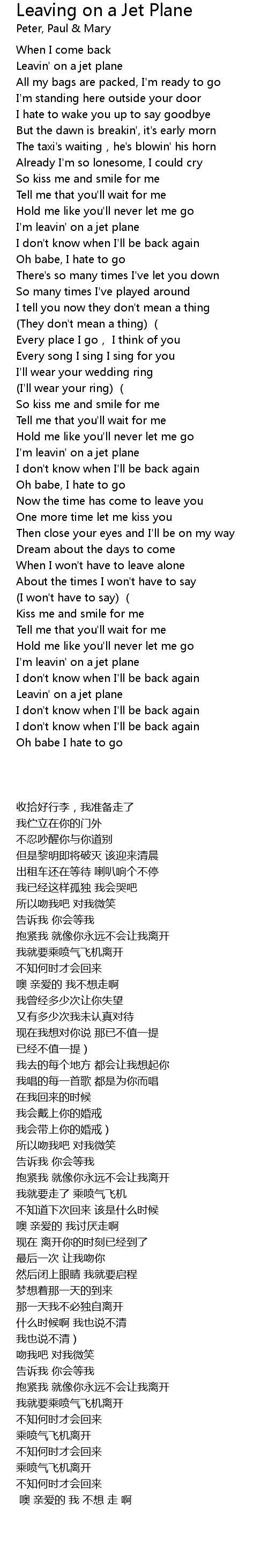 | [00:29.230] | The taxi's waiting,he's blowin' his horn |