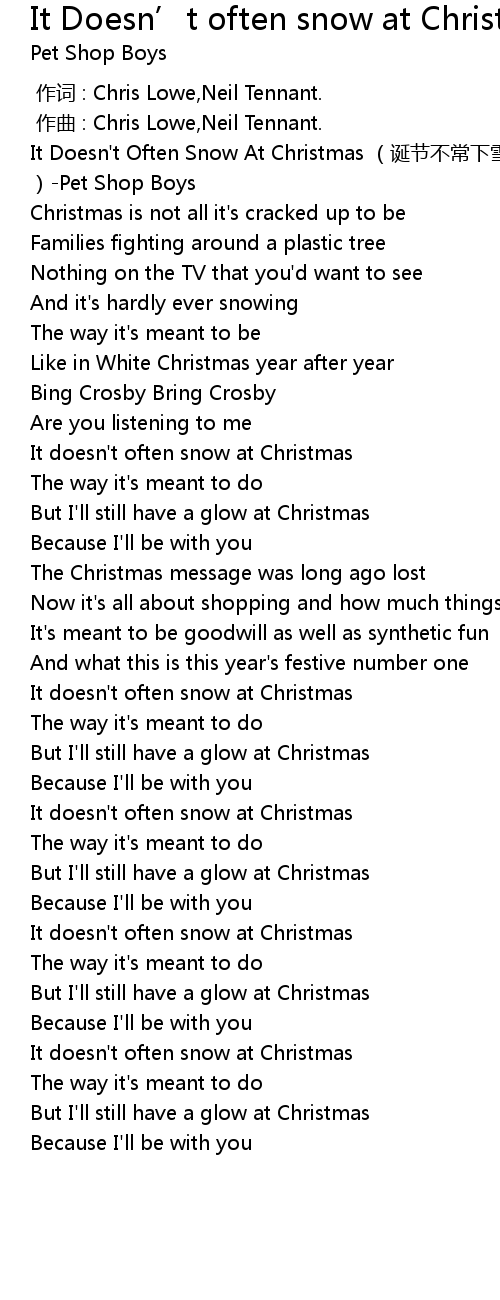 | [00:00.00] | It Doesn' t Often Snow At Christmas dan jie bu chang xia xue Version Pet Shop Boys |