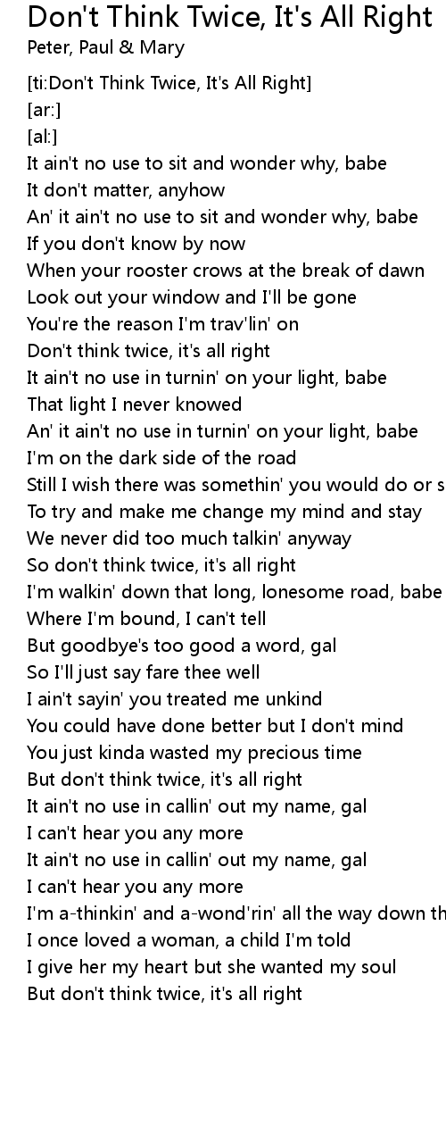I'm a-thinkin' and a-wond'rin' all the way down the road |