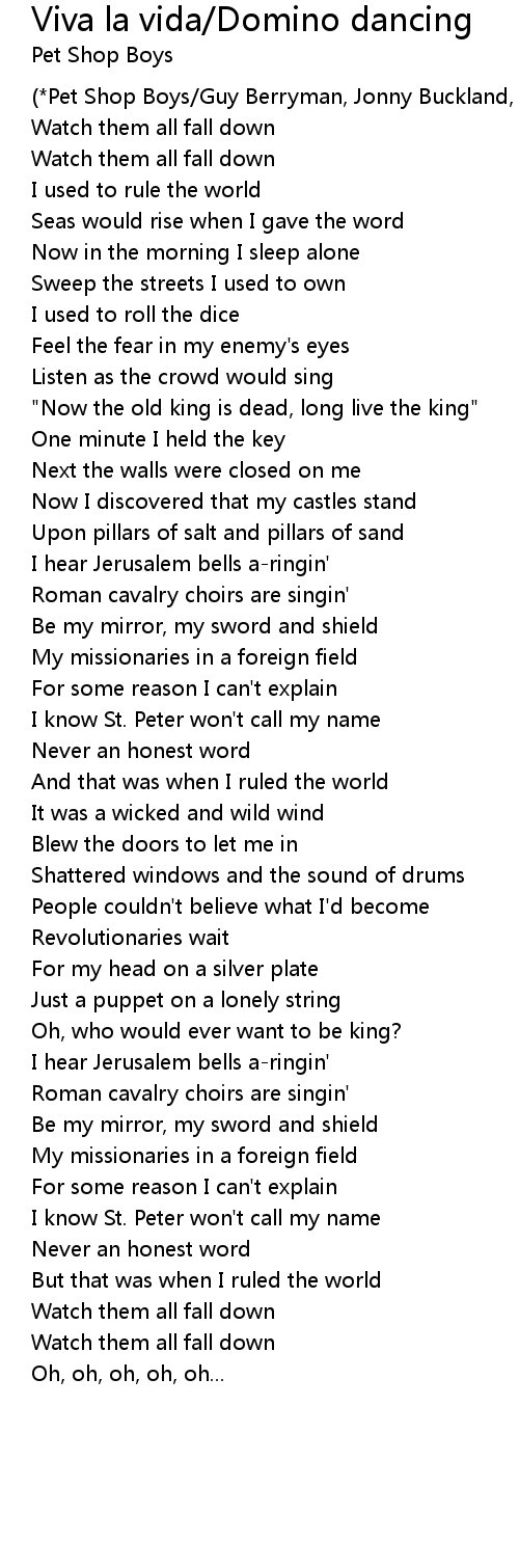 (*Pet Shop Boys/Guy Berryman, Jonny Buckland, Will Champion, Chris Martin) |