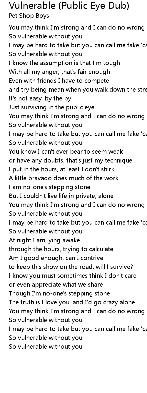 You may think I'm strong and I can do no wrong but I'm vulnerable