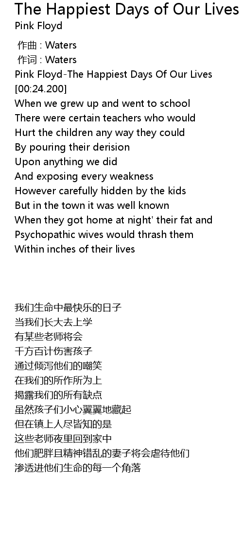 | [00:00.000] | Pink Floyd-The Happiest Days Of Our Lives |
