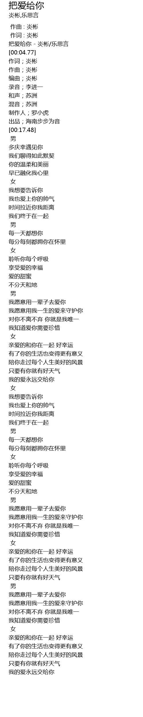 [00:01.27] 把爱给你 - 炎彬/乐思言