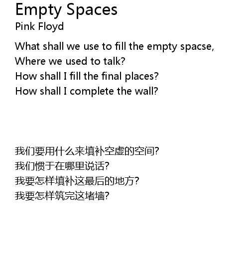 | Song | Empty Spaces |