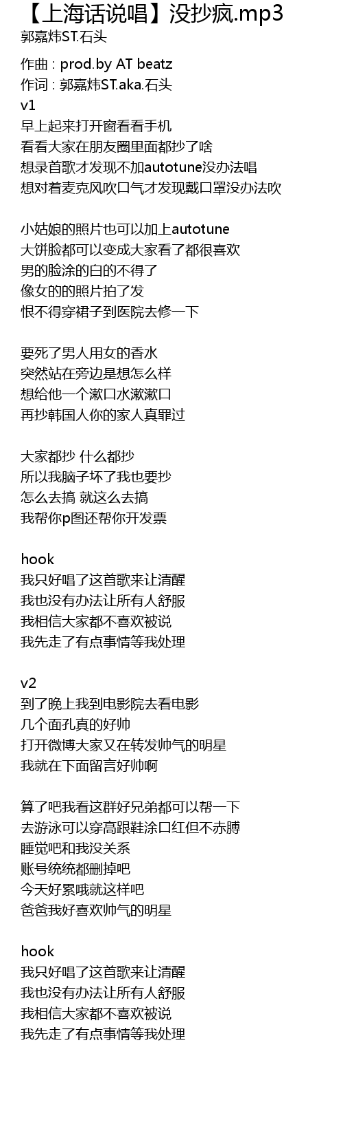 | 作词 : 郭嘉炜ST.aka.石头 | |