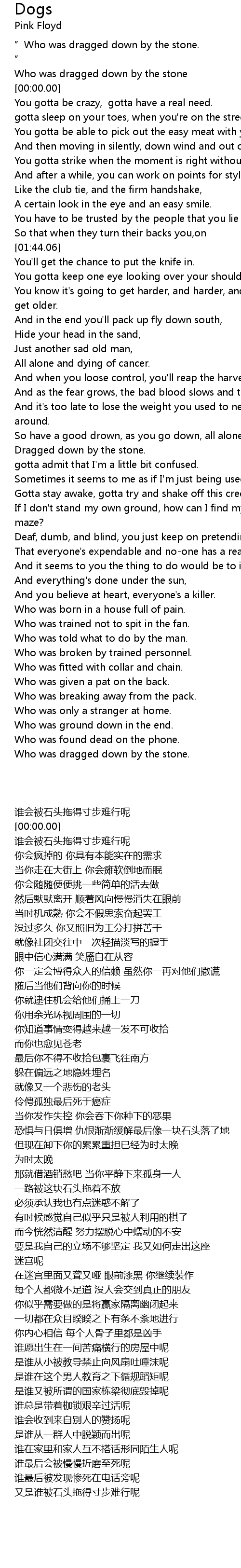 | [00:00.00] | Who was dragged down by the stone |