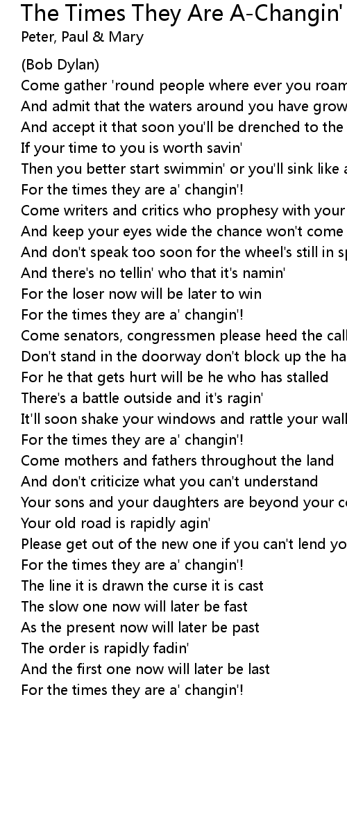 For the times they are a' changin'! |