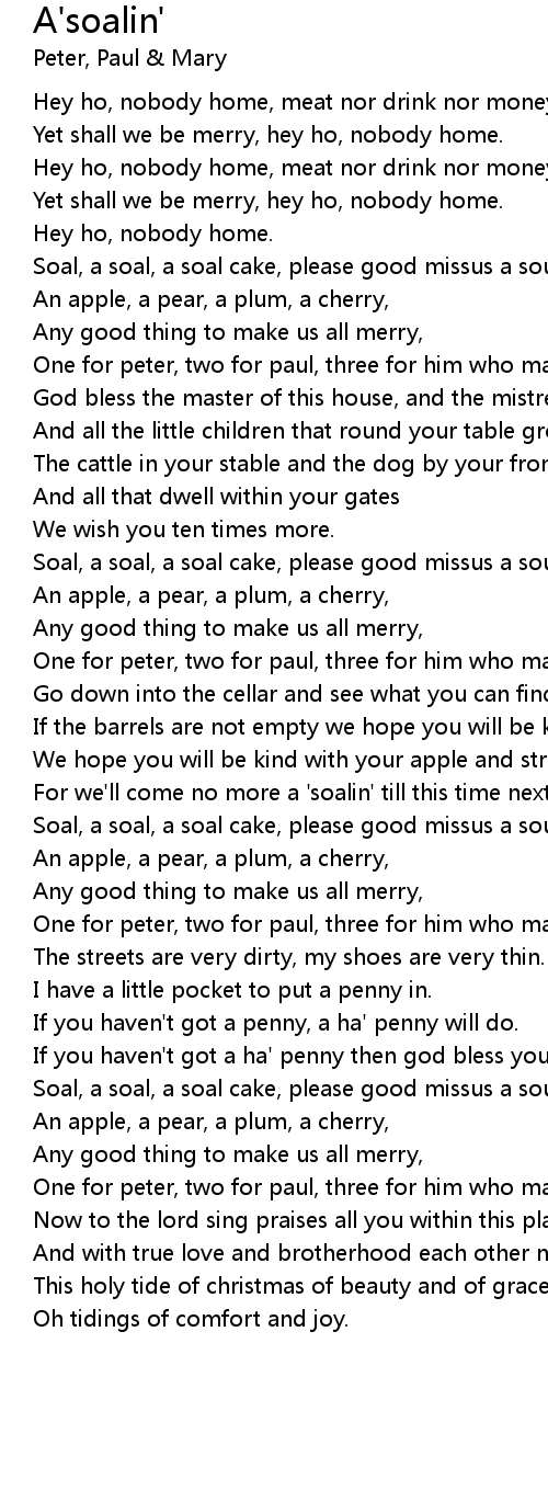 Soal, a soal, a soal cake, please good missus a soul cake. |