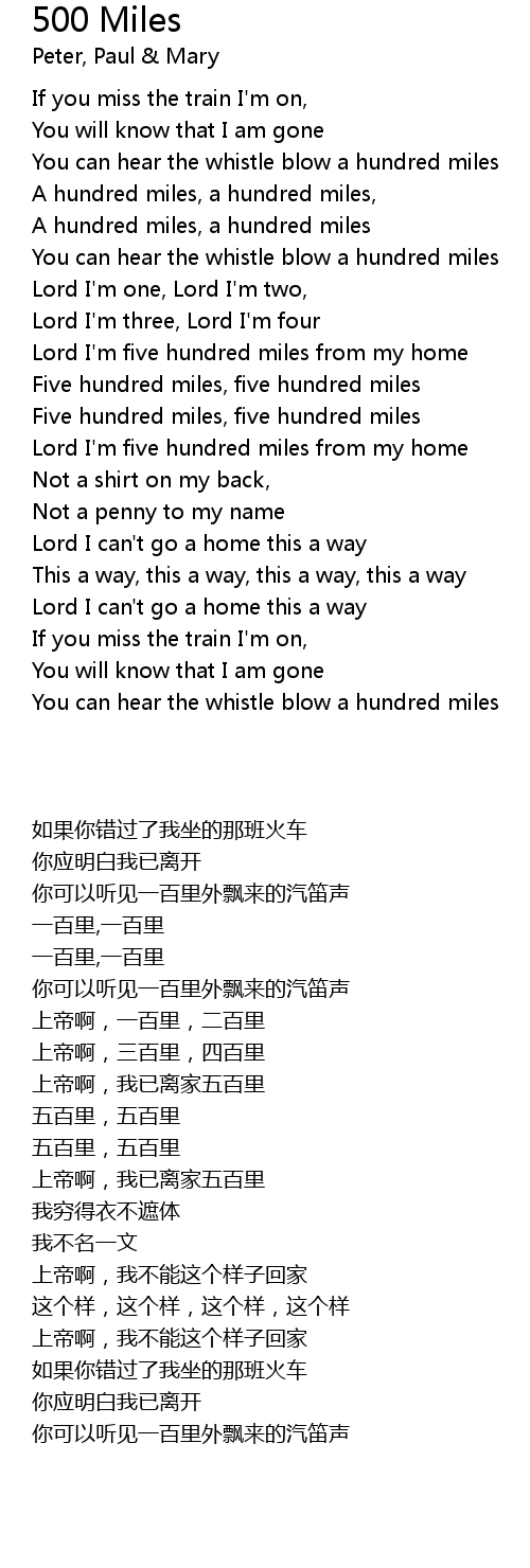 Five hundred miles, five hundred miles |