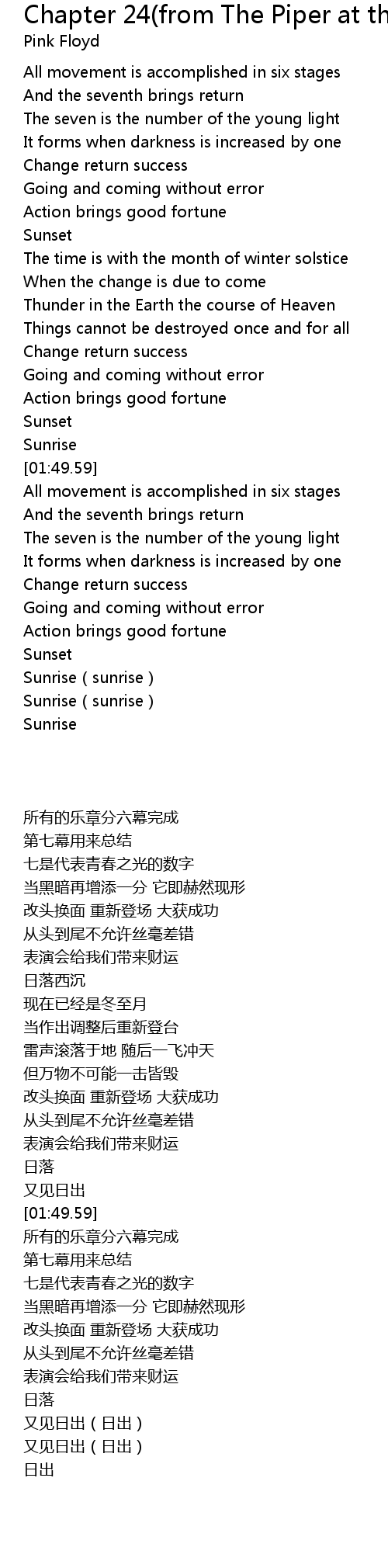 | Song | Chapter 24(from The Piper at the Gates of Dawn) |