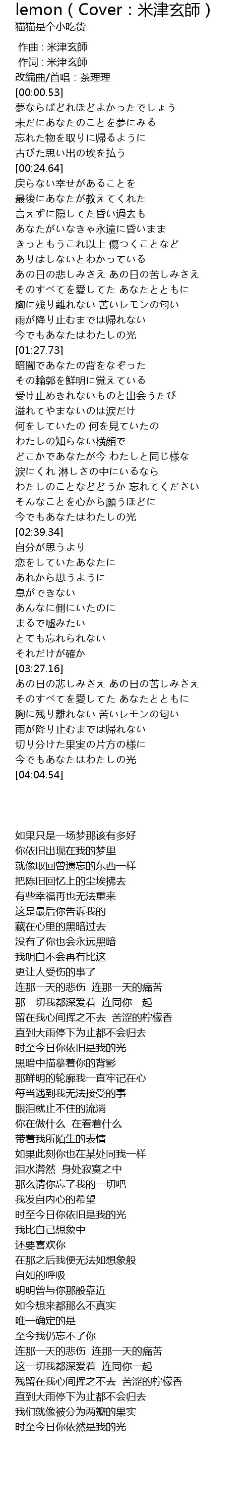 | [03:41.55] | 胸に残り離れない 苦いレモンの匂い |