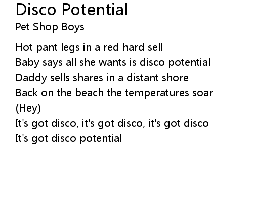 | Song | Disco Potential |
