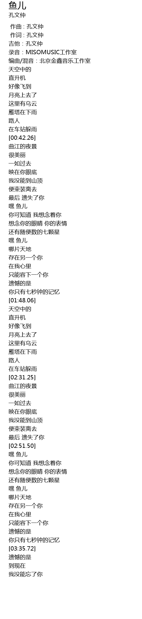 | [00:13.96] | 录音:MISOMUSIC工作室 |