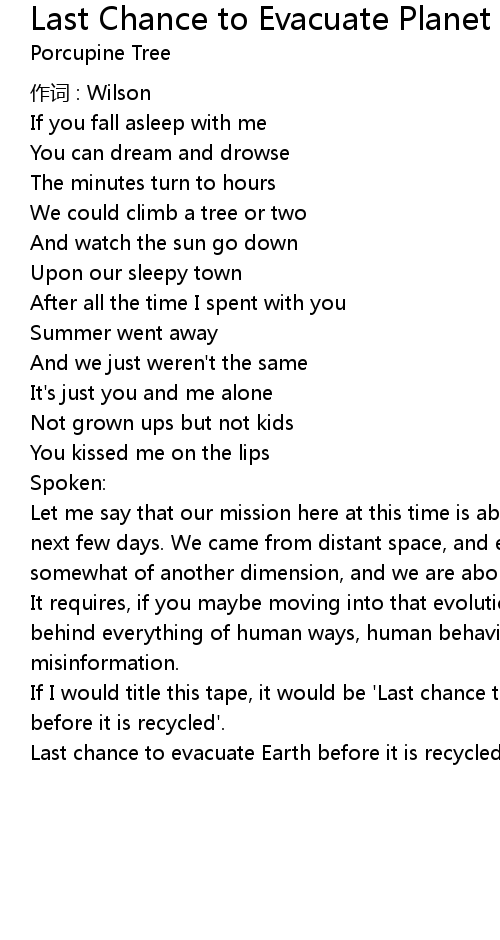 | Song | Last Chance to Evacuate Planet Earth Before It Is Recycled |