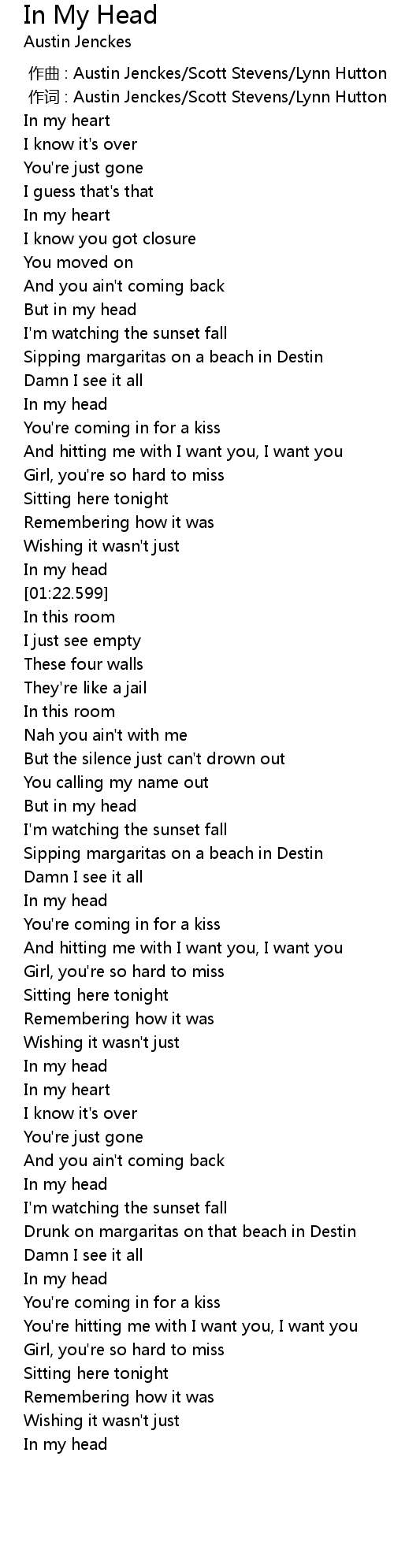 | [01:18.691] | In my head |